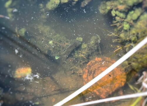 地元の農業用水のため池。外来種が多く繁殖しています。 ブラックバス、ブルーギル、ミシシッピアカミミガメ。これらが陸からでも確認でき、他にもまだまだいるかもしれません。(中央に写っているのはブルーギル)日本の農業を支えるため池は外来種だらけに…